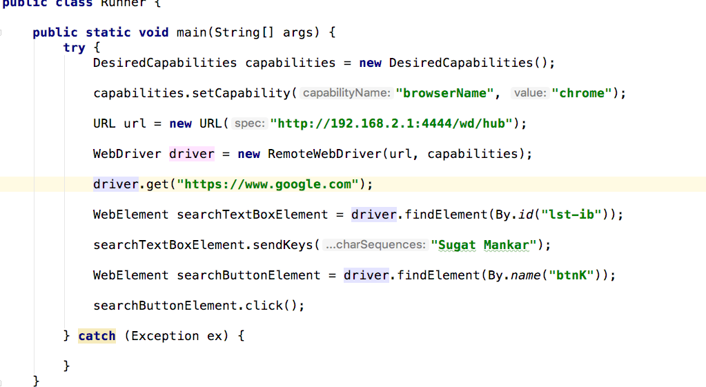webdriver and constructor in above class (Cut code from Runner class and put in